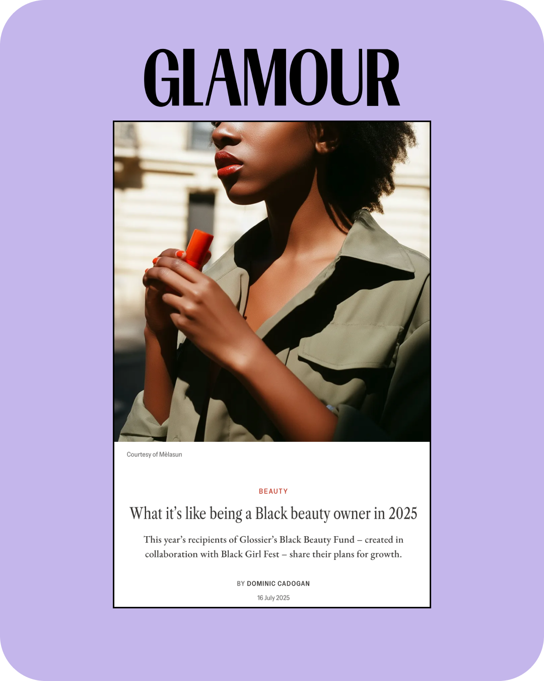 Since 2023, we’ve worked closely with Glossier on The Black Beauty Grant programme, offering mentoring, resources and equity-free grants.